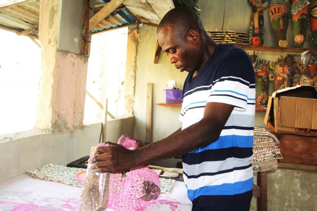 Le matériau de prédilection de l’artiste, le cauri, devient ici le vecteur principal d’un message sur la force collective. Ce petit coquillage de deux centimètres, autrefois monnaie et symbole de divination, incarne selon lui une philosophie de vie indispensable. L’artiste précise que si un cauri est fragile et facile à briser lorsqu’il est seul, il gagne en stabilité et imprime une force remarquable à l’œuvre une fois assemblé aux autres. Il dresse un parallèle saisissant avec la condition humaine, affirmant que l’Homme, très vulnérable seul, devient fort en confrérie. Cette technique d’accumulation sert de socle à une thématique qui lui est chère : la résilience. Ce projet de grande envergure prévoit la création d’une série de trente-huit œuvres diversifiées, incluant des masques, des sculptures en aluminium et des installations vidéo. Le parcours de création de Gislain Fadohan l’amènera à explorer des hauts lieux de l’histoire béninoise, d’Abomey à Kétou en passant par Allada et le Nord du pays, afin de capter l’essence d’une cohésion sociale ancestrale. En ouvrant périodiquement son atelier d’Akassato aux apprenants et au public, l’artiste souhaite transformer sa résidence en un espace pédagogique, avant de restituer au monde ces formes de résilience qui célèbrent la beauté du patrimoine national.